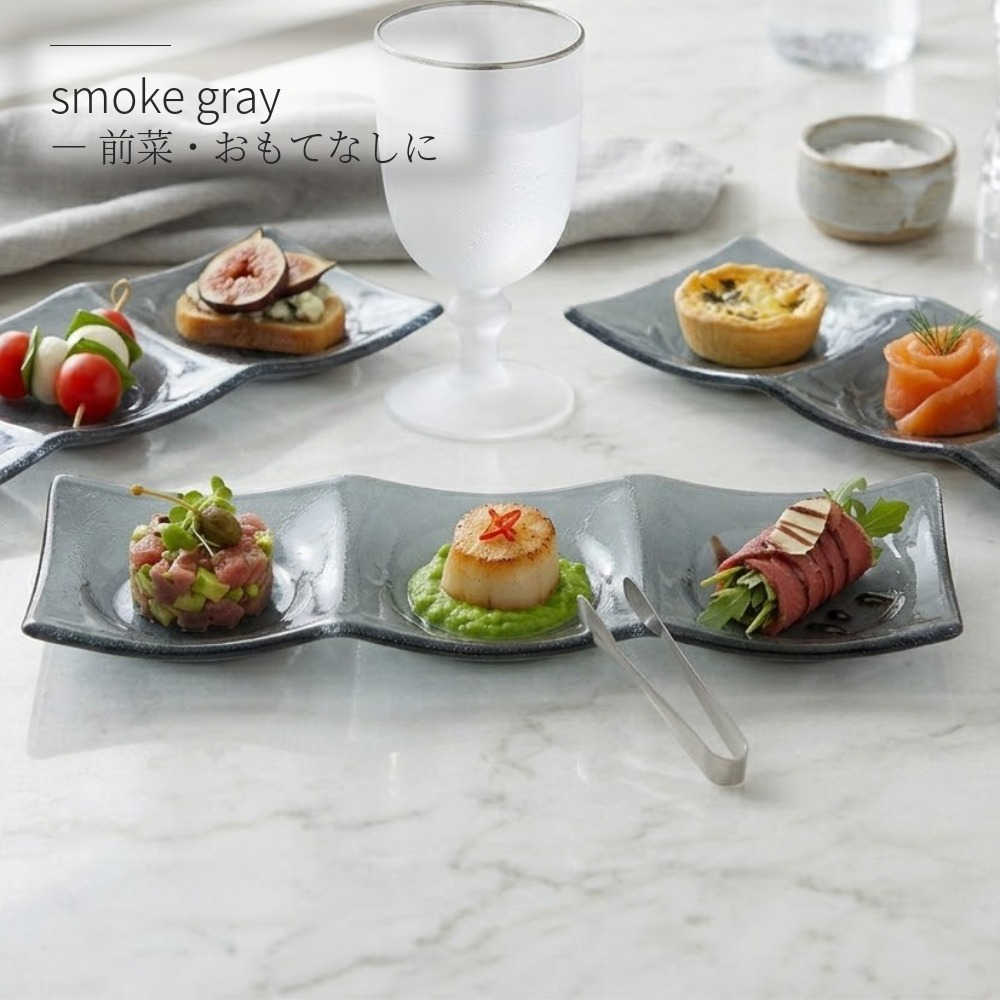 3つ仕切り 三連皿 ガラス 仕切り皿 おしゃれ 30cm 3連菜 四季彩陶器 美濃焼 業務用 シーニュ スモーク 2530395