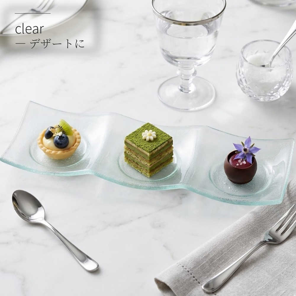 3つ仕切り ガラス 皿 おしゃれ 30cm 3連菜 四季彩陶器 美濃焼 業務用 シーニュ クリア 2570395